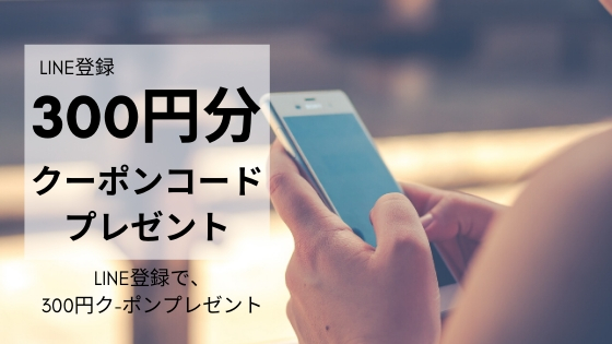 公式LINEへご登録頂きますと、300円割引適用のクーポンコードをプレゼント。